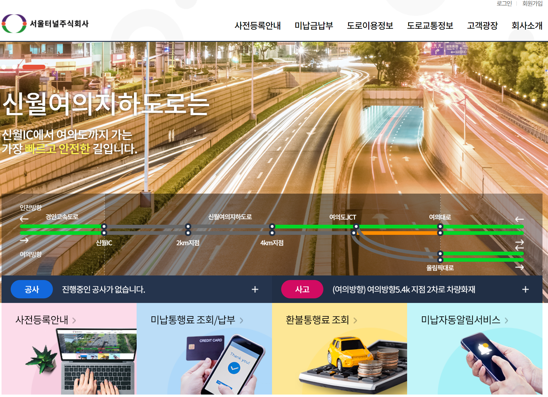 신월여의도지하도로는 무정차,무감속스마트톨링시스템으로 운영됩니다.