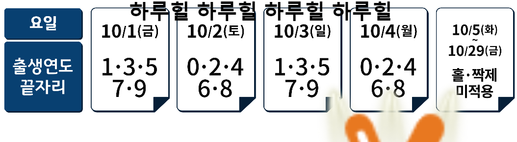 아래표는 신청 홀짝제에 대한 안내입니다. 더자세한 정보와 신청은 위 홈페이지를 통해 확인할 수 있습니다.